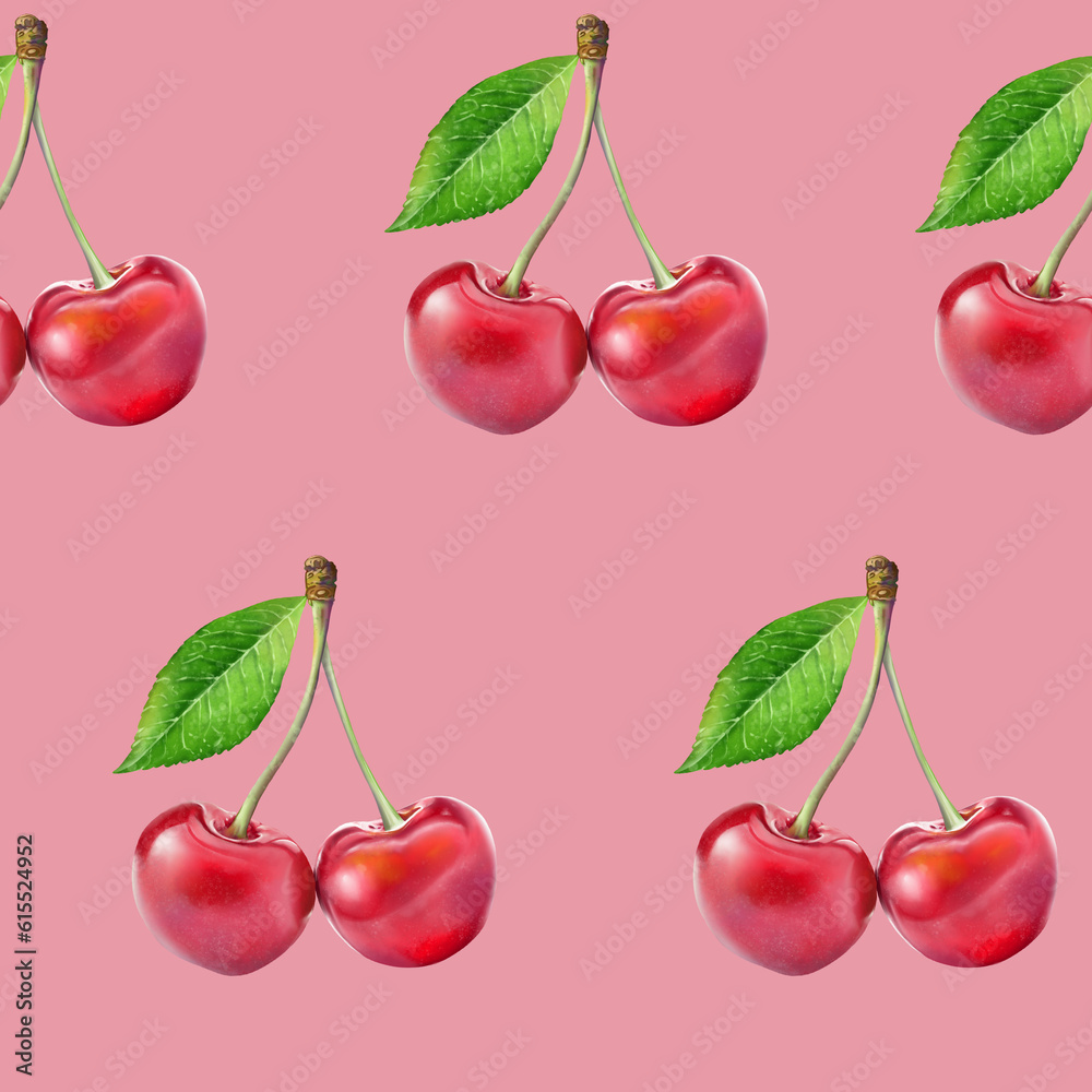 Illustration Realism Seamless Pattern Berry Red Cherry With Wallpaper Mural - Decorly Solutions | Decorly Solutions