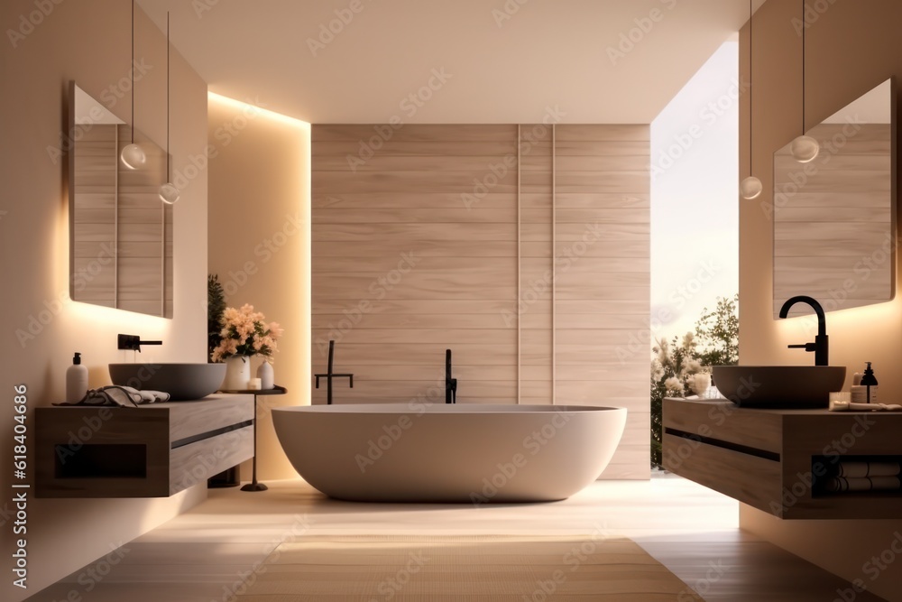 Elegant and modern bathroom interior design with natural light and wooden vanity