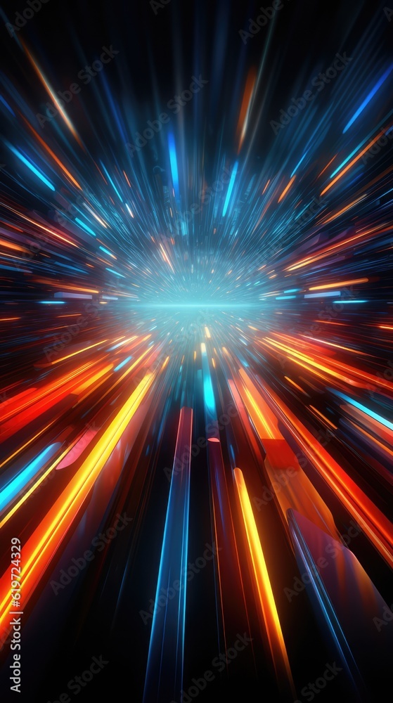 Futuristic Light Rush, Vibrant Streaks Creating An Ethereal Tunnel Of Glowing Beams And Abstract Beauty.