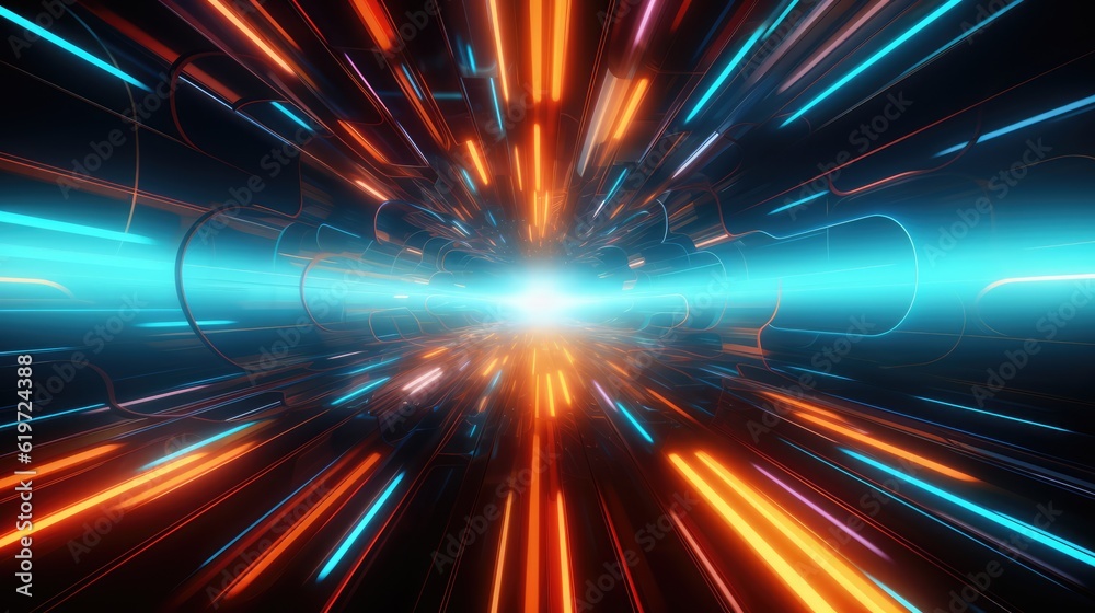 Futuristic Neon Light Speed Tunnel Abstract Background