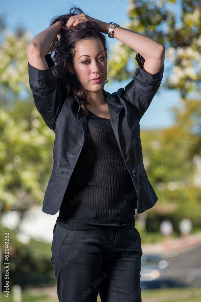 Attractive Hispanic Brunette Fashion Woman Wallpaper Mural - Decorly Solutions | Decorly Solutions