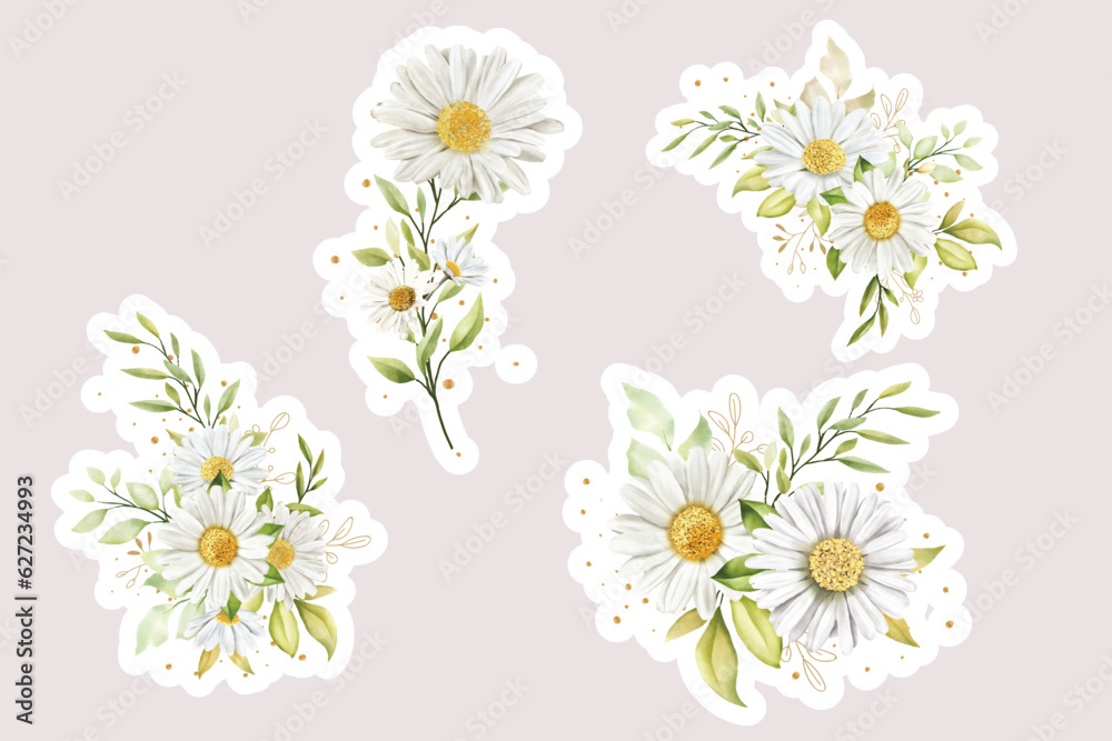 Watercolour Daisy Bouquet And Branch Sticker Illustration Wallpaper Mural - Decorly Solutions | Decorly Solutions