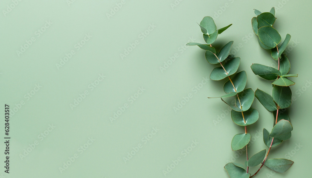 Eucalyptus Branch On Pastel Green Background Flat Lay Wallpaper Mural - Decorly Solutions | Decorly Solutions