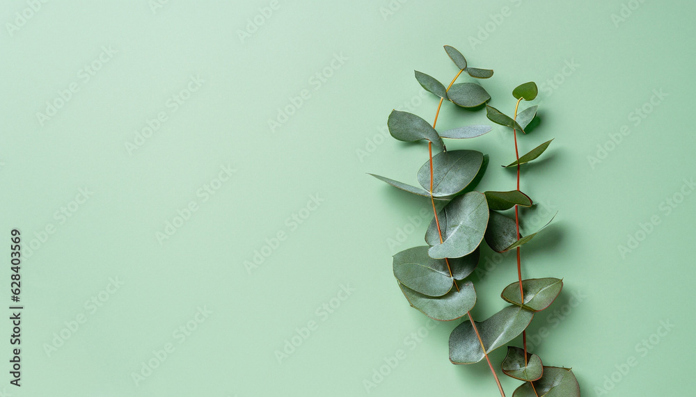 Eucalyptus Branch On Pastel Green Background Flat Lay Wallpaper Mural - Decorly Solutions | Decorly Solutions