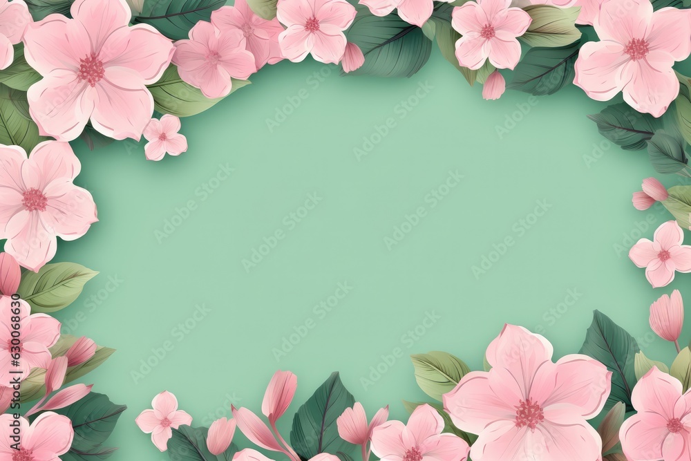 Pink Flower Frame With A Green Background Space Wallpaper Mural - Decorly Solutions | Decorly Solutions