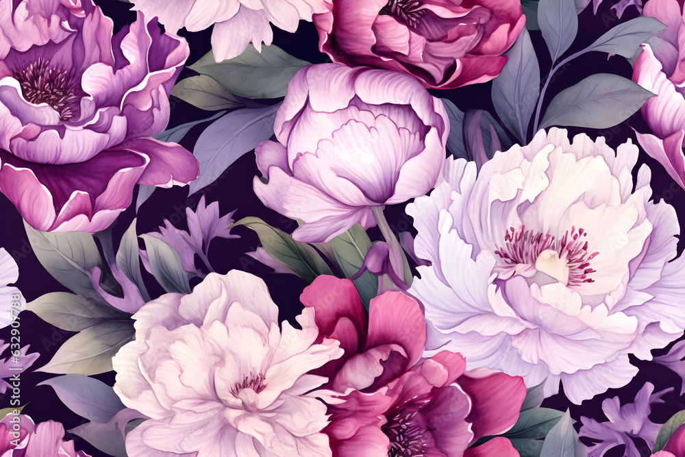 Peony Flowers Watercolor Seamless Pattern Wallpaper Mural - Decorly Solutions | Decorly Solutions