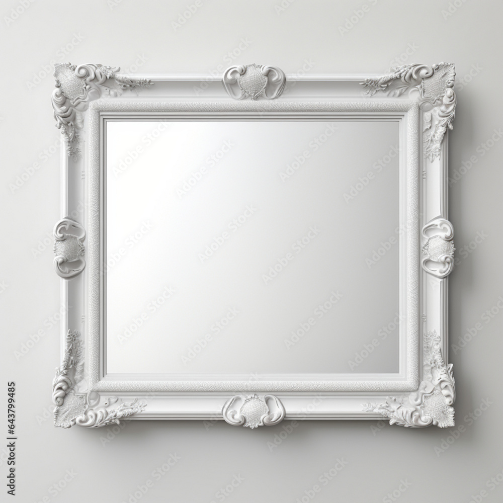 Classic white baroque ornate frame with transparent background, perfect for showcasing artwork or photos