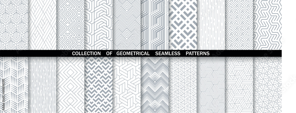 Geometric set of seamless gray and white patterns. Simpless vector graphics.