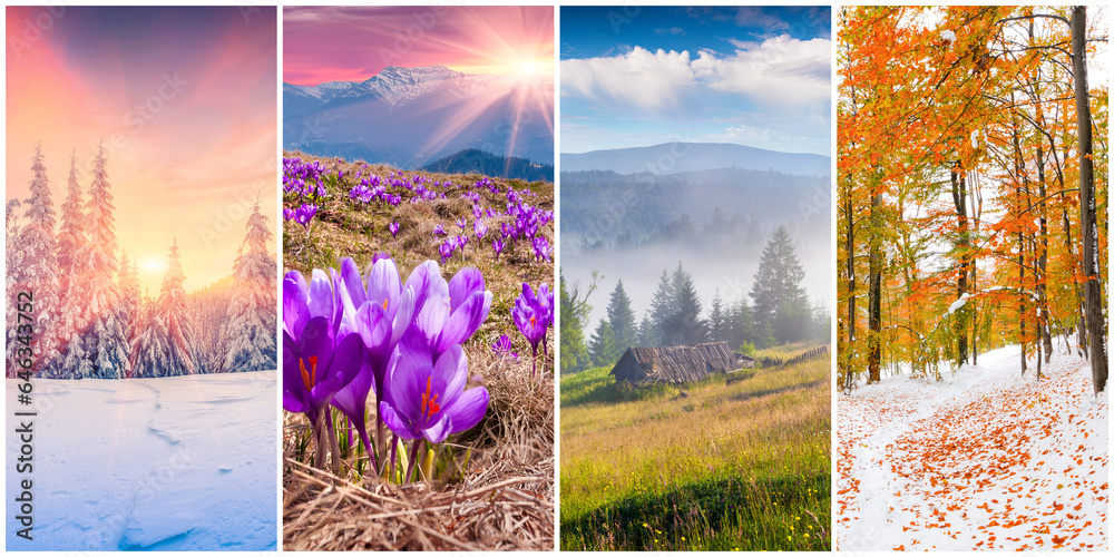 Collage of four seasons landscapes Set of vertical pictures Wallpaper