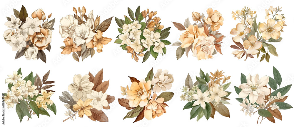Vintage Grass And Flowers Isolated Boho Style Generated Wallpaper Mural - Decorly Solutions | Decorly Solutions