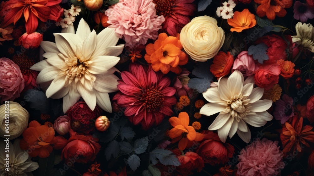 Vibrant Mixed Flower Bouquet With Roses, Dahlias, And Chrysanthemums