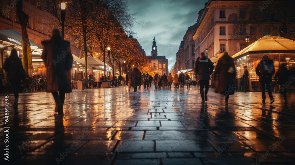 Vibrant City Life: People Walking The Night Streets, Urban Exploration.