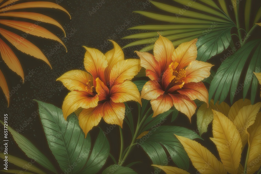 A Painting Of Flowers And Leaves On A Wallpaper Mural - Decorly Solutions | Decorly Solutions