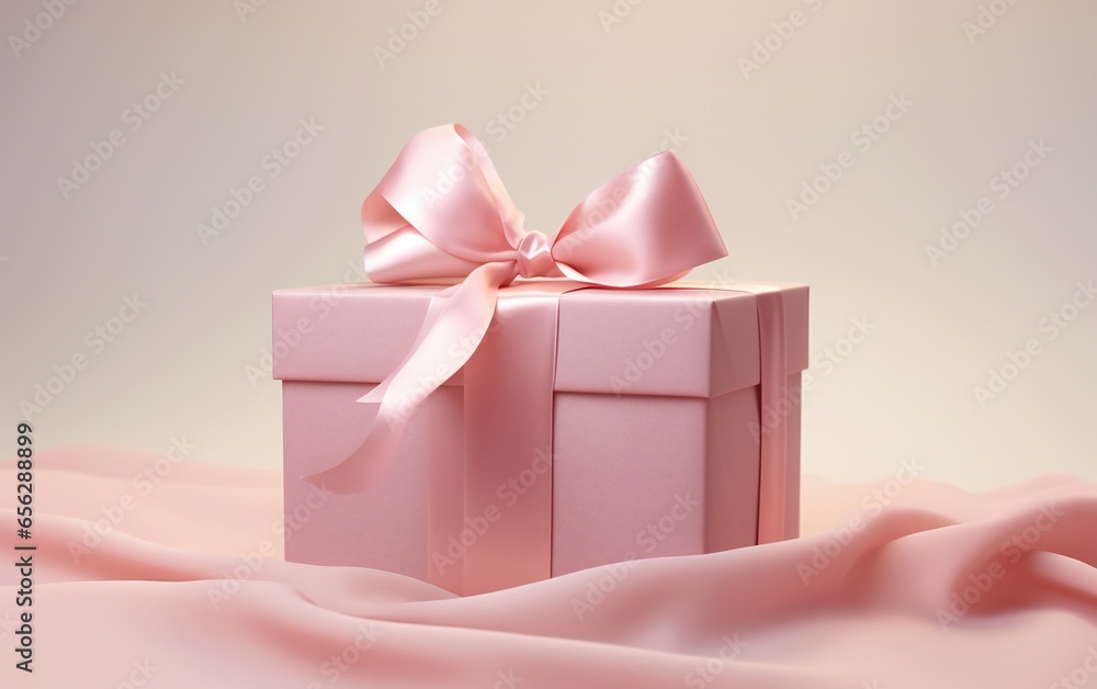 This charming image features a pink gift box with a ribbon on a soft pink background, offering copy space and ideal for romantic occasions.
