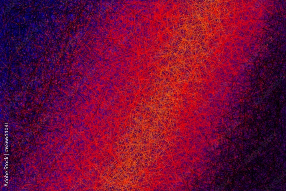 Wallpaper, texture in the form of coloured lines reminiscent of crayons. Colour transition. Disordered lines, different directions of lines. Different shades of magenta on a black background.