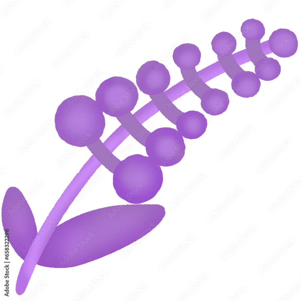 Purple sphere cluster connected by a center cylinder on a black background, rendered with glossy, pearlescent surface