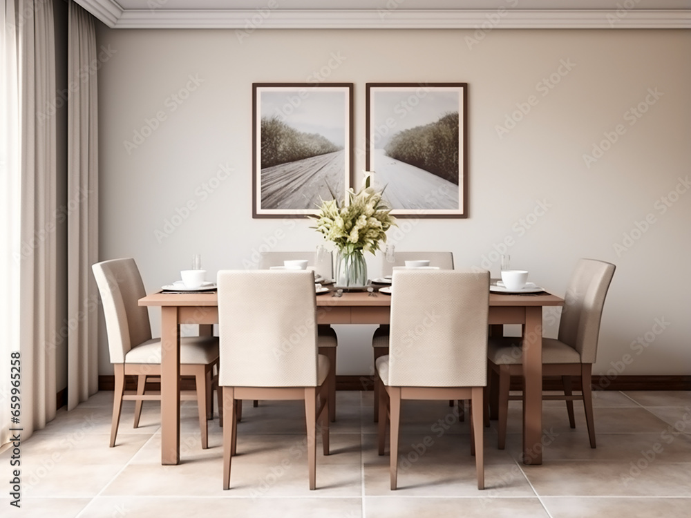 Stylish Beige Dining Room Inviting Furniture Choices Ai Wallpaper Mural - Decorly Solutions | Decorly Solutions