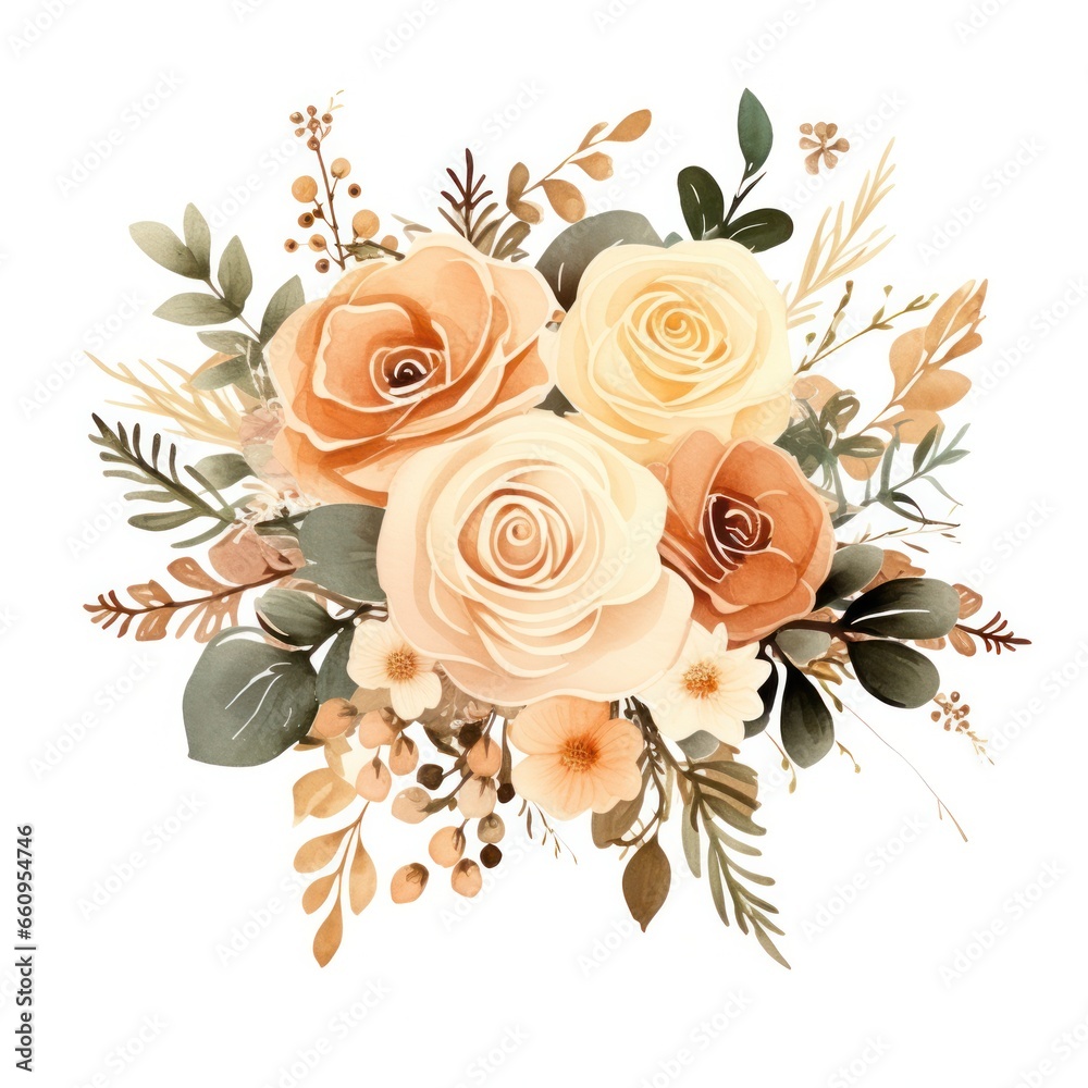 Watercolor floral bouquet isolated on white background.