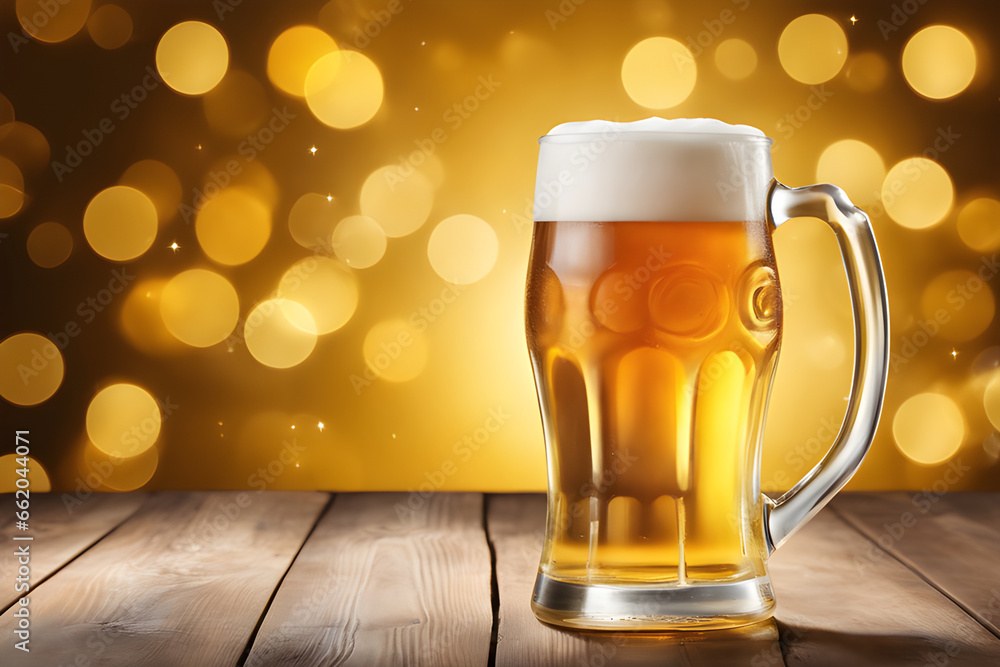 Cold Beer On Wooden Table With Gold Bokeh Wallpaper Mural - Decorly Solutions | Decorly Solutions
