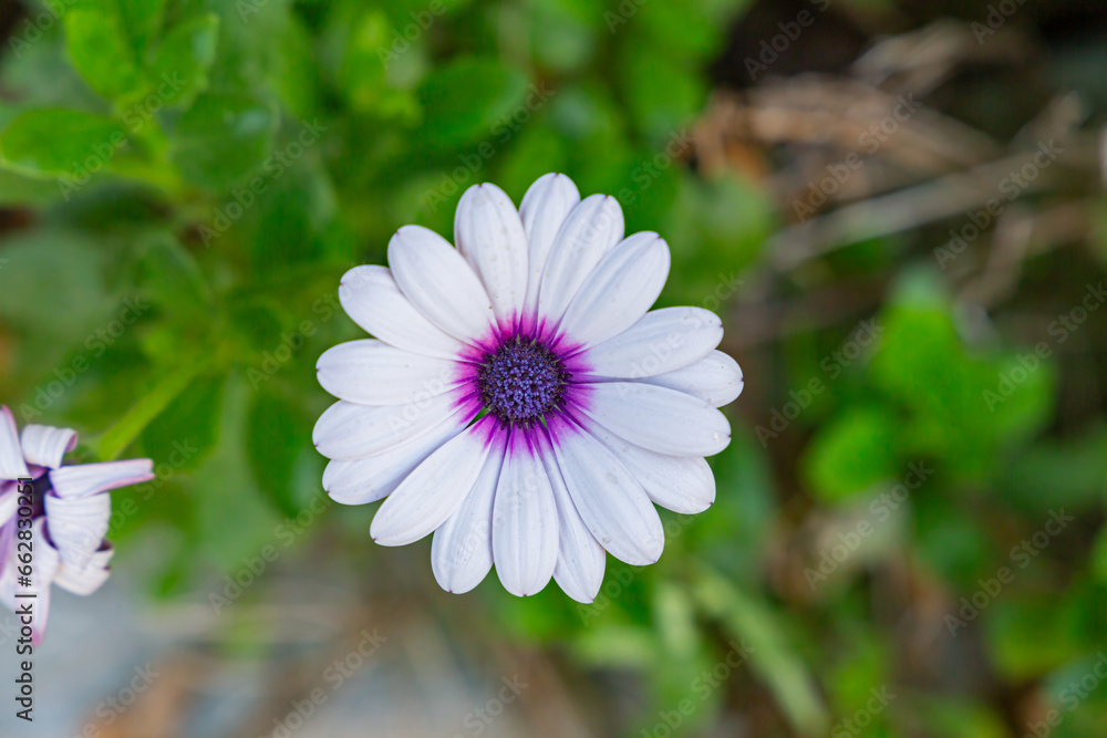 Photography of white and purple wildflowers. Concept of plants and flowers.