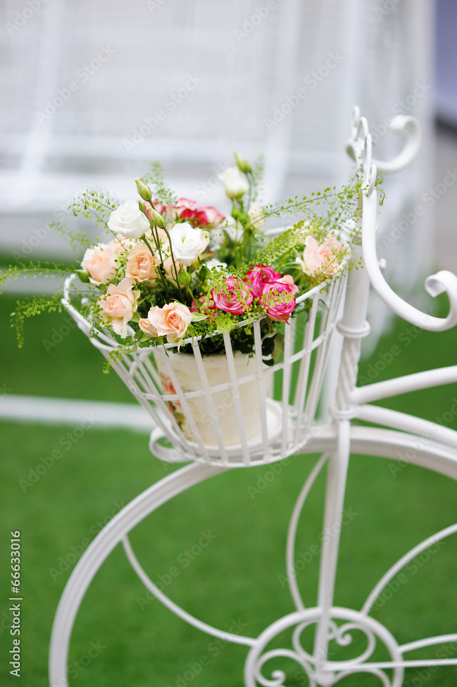Flowers basket in vintage bicycle