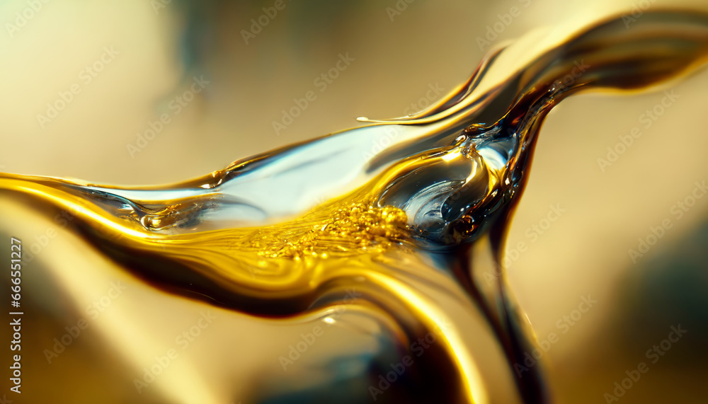 Beauty in Motion, Light Shining on Golding Splash of Oil, Creating Smooth and Elegant Swirls, Ideal for Fuel and Luxury Concepts, generative ai.