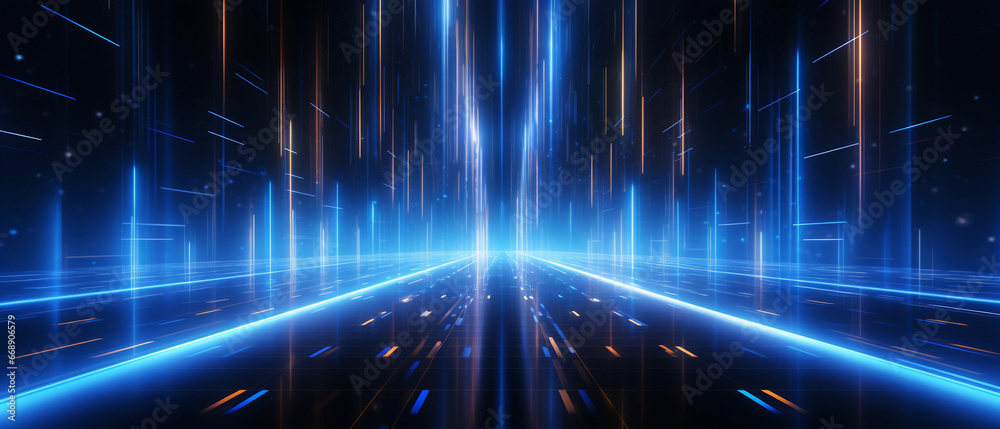 Vector Abstract, science, futuristic, energy technology concept. Digital image of light rays, stripes lines with blue light background