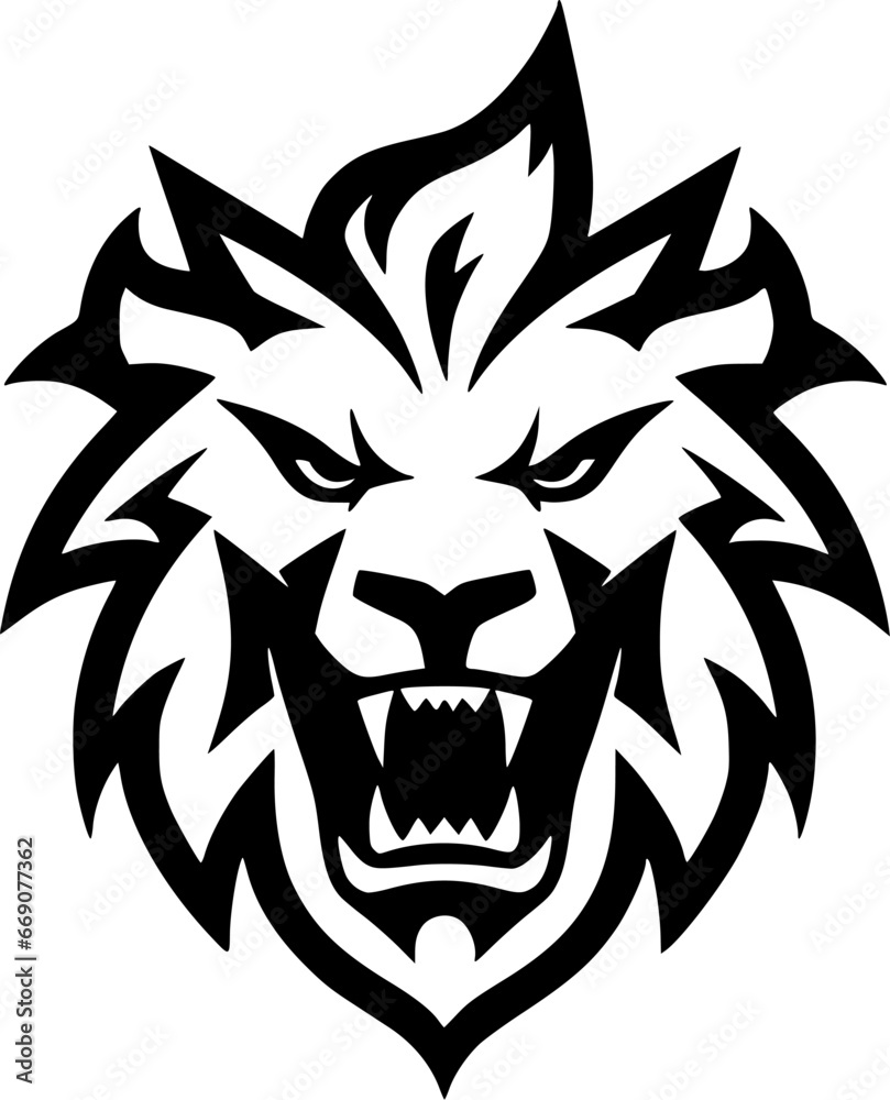 Bold black and white illustration of a regal lion head suitable for logos and branding