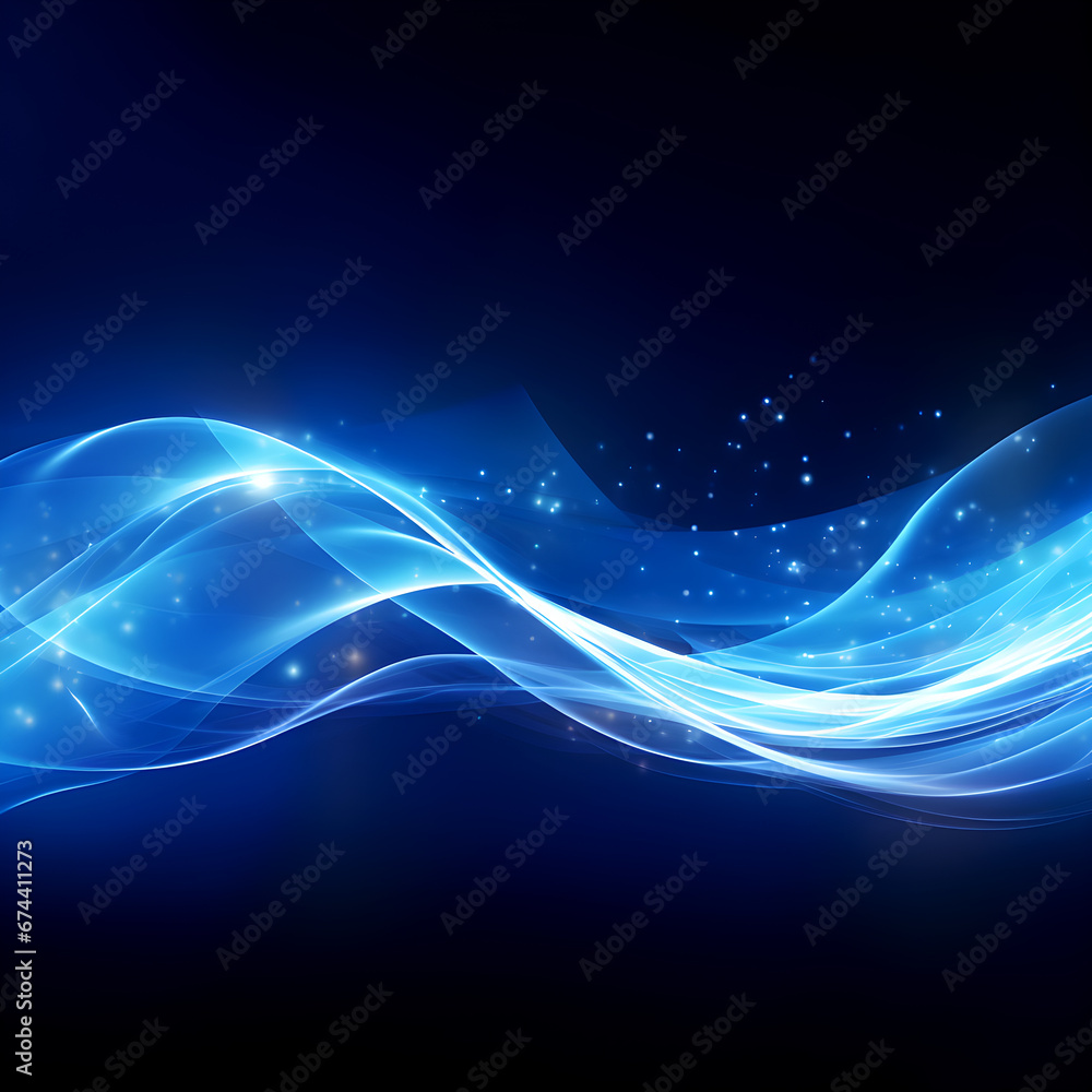 Abstract blue light waves and curves on a dark background, creating a dynamic and futuristic look.