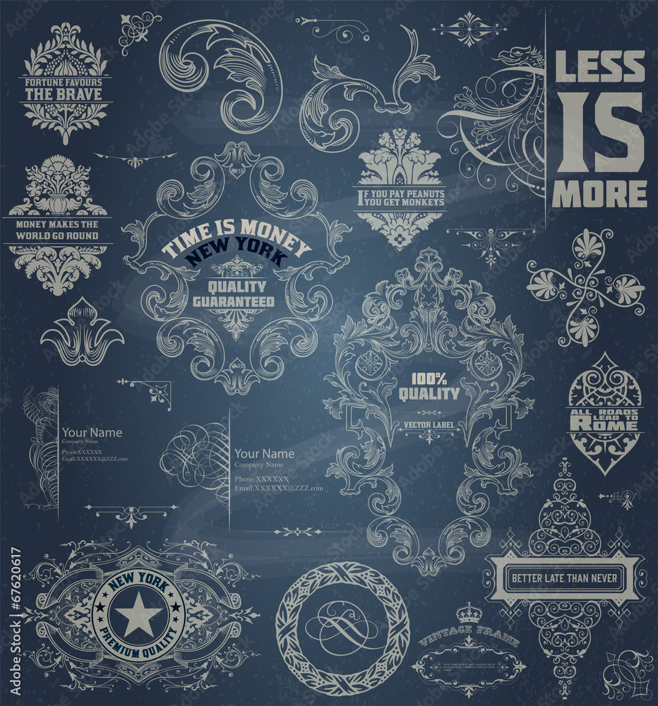 Set of calligraphic design elements Heraldry, labels, baroque f