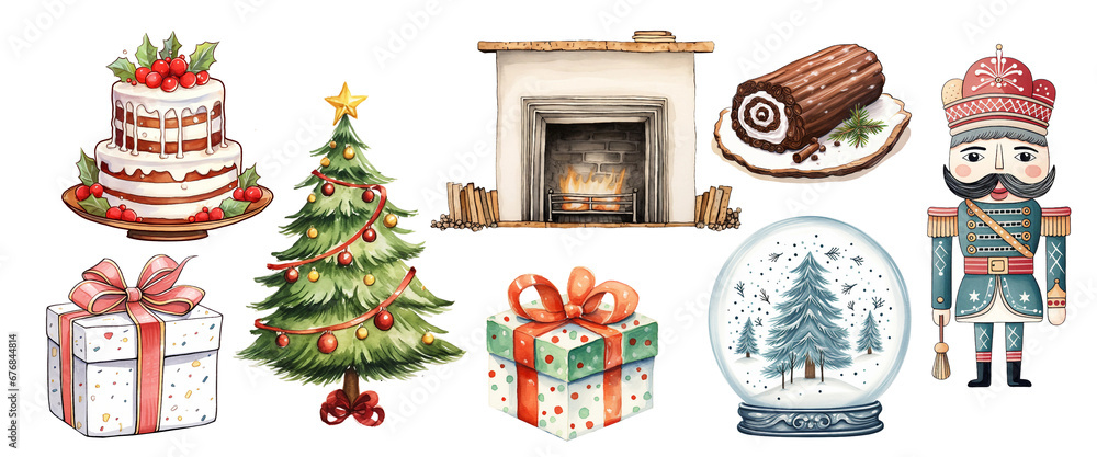 Illustration Set Of Christmas Elements Wallpaper Mural - Decorly Solutions | Decorly Solutions