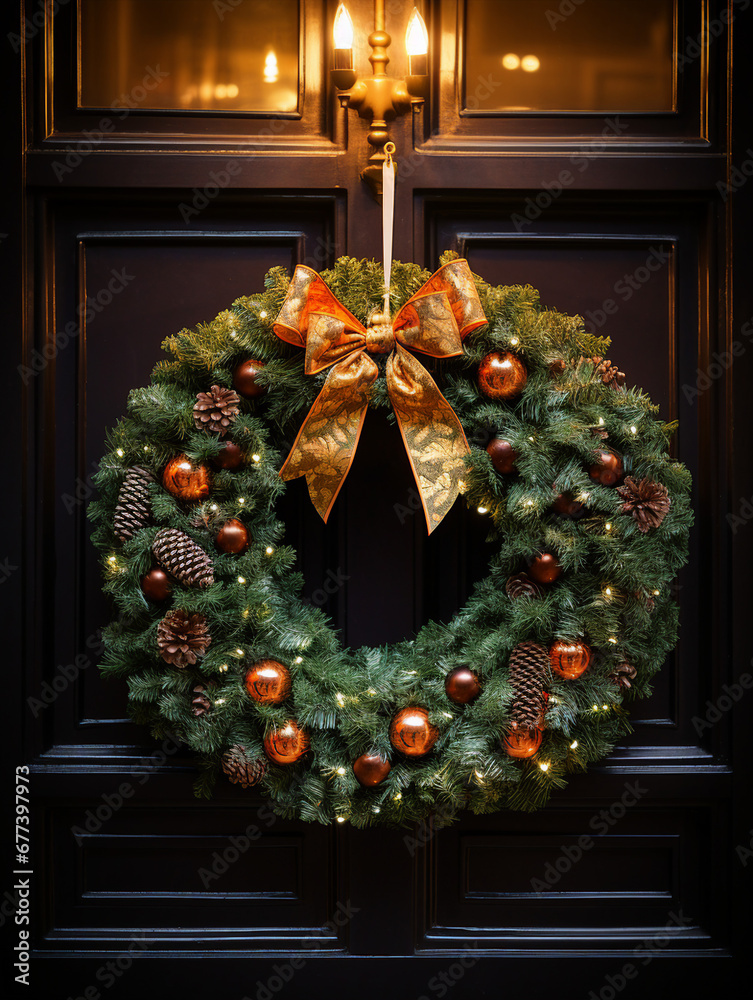 Christmas Wreath With Red And Gold Balls Wallpaper Mural - Decorly Solutions | Decorly Solutions