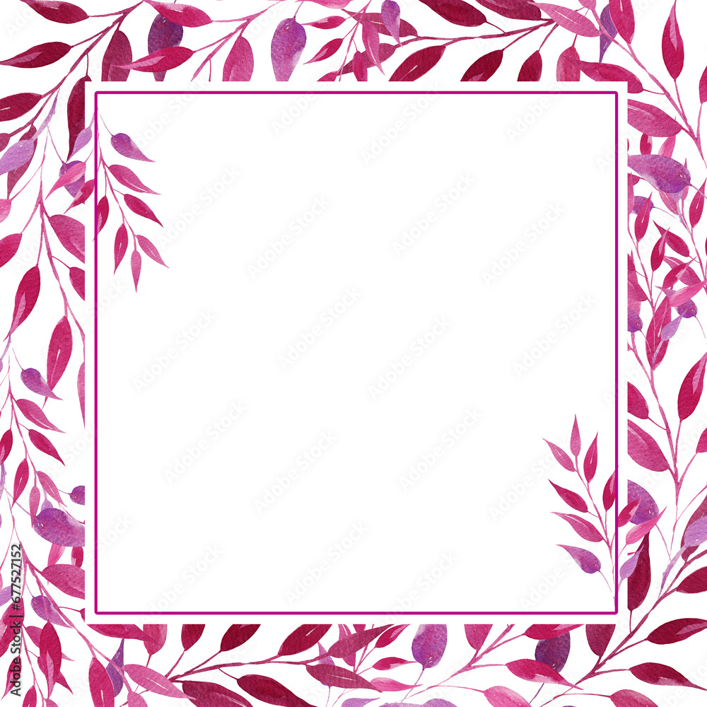 Watercolor Square Frame With Pink And Magenta Leaves Wallpaper Mural - Decorly Solutions | Decorly Solutions