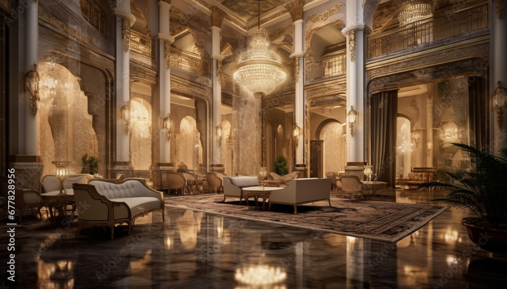 Ultra Realistic Cinematic Capture Of Elegant Hotel Lobby With Luxurious Decor And Atmosphere