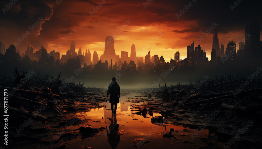 Silhouette Of One Person Standing In Tranquil Sunset Wallpaper Mural - Decorly Solutions | Decorly Solutions