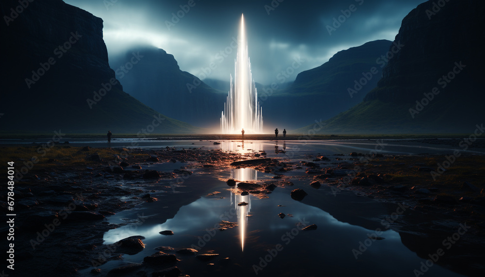Majestic mountain peak reflects tranquil moonlight in dark night generated by AI