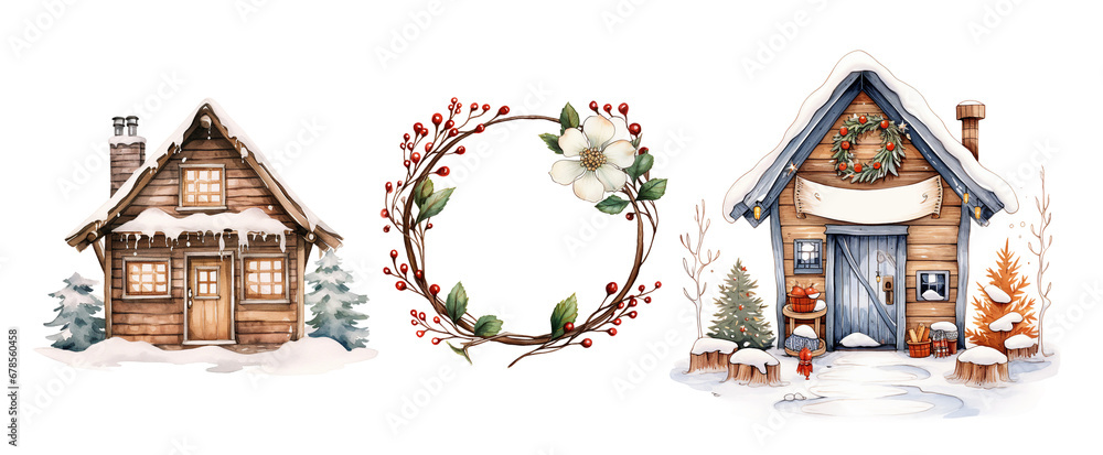Hand Drawn Illustration Of Wooden House With Christmas Wallpaper Mural - Decorly Solutions | Decorly Solutions
