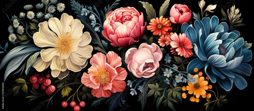 Colorful Flower Arrangements On A Dark Background Designed Wallpaper Mural - Decorly Solutions | Decorly Solutions