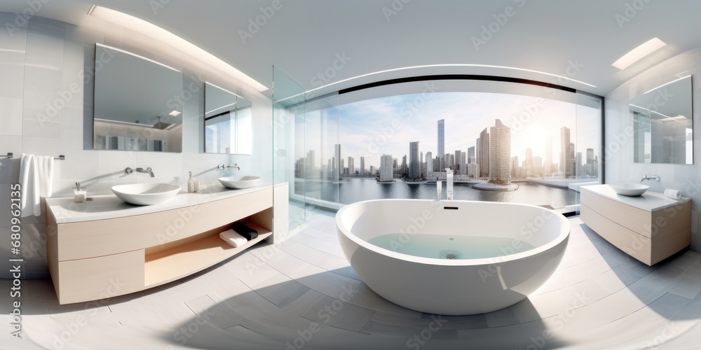360 Spherical Panorama Of A Bathroom With A Wallpaper Mural - Decorly Solutions | Decorly Solutions