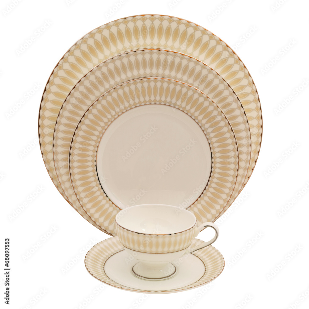 One ceramic plate, macro, isolated on white background.