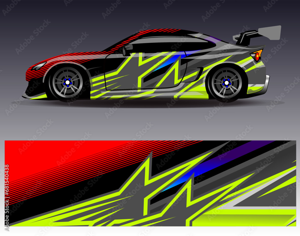 Car wrap design vector. Graphic abstract stripe racing background kit designs for wrap vehicle  race car  rally  adventure and livery