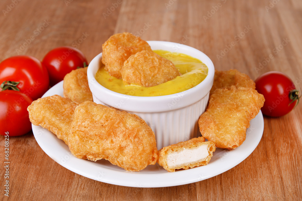 Chicken Nuggets With Sauce On Table Close-up Wallpaper Mural - Decorly Solutions | Decorly Solutions