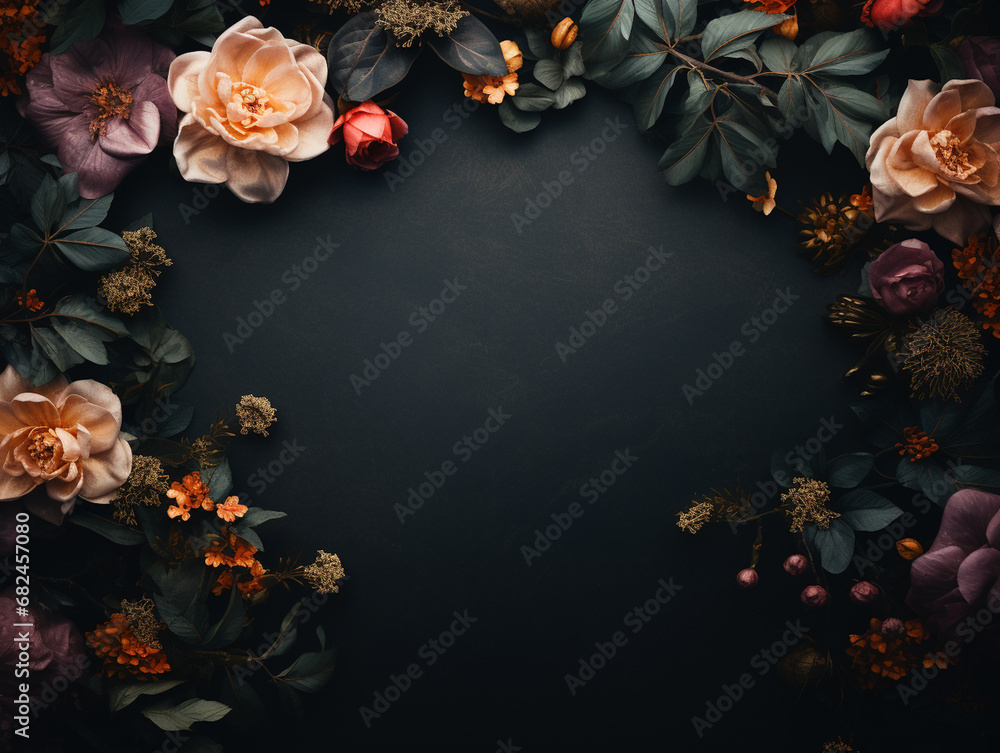 Rich Botanical Flowers On A Textured Dark Background Wallpaper Mural - Decorly Solutions | Decorly Solutions