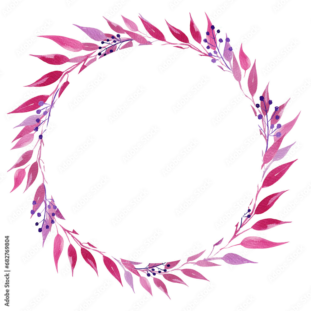 Watercolor wreath with pink and magenta leaves illustration Wallpaper