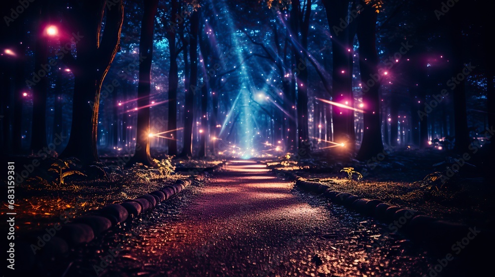 Misty Forest Path with Soft Light Rays Mystical Foggy Mornings ,Winter seasson, Happy New Year, Happy christmass