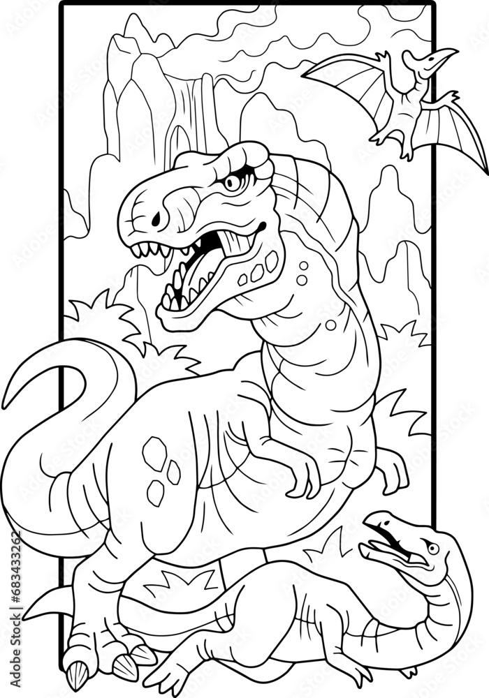 Prehistoric Dinosaur Tyrannosaurus Contour Illustration Coloring Book Wallpaper Mural - Decorly Solutions | Decorly Solutions