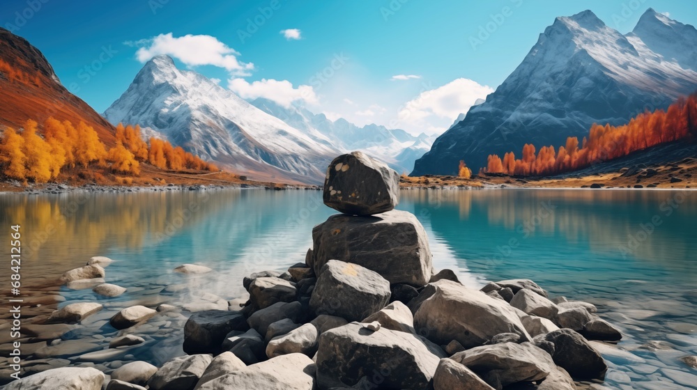 Landscape With Mountains Lake And Autumn Trees Wallpaper Mural - Decorly Solutions | Decorly Solutions