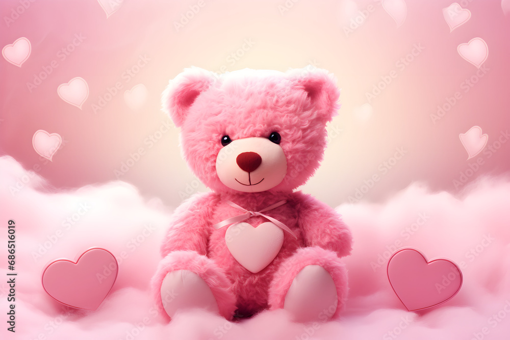 Teddy Bear With Heart Teddy Bear Pink Isolated Wallpaper Mural - Decorly Solutions | Decorly Solutions