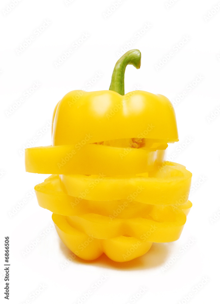 Yellow paprika from slices isolated on white