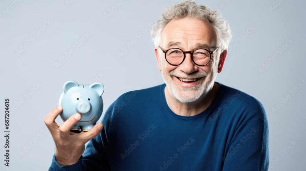 Cheerful Senior Man Holding A Piggy Bank Symbolizing Wallpaper Mural - Decorly Solutions | Decorly Solutions